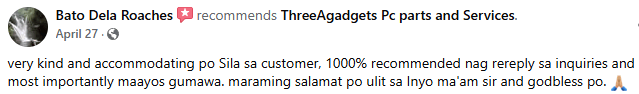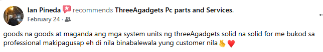 goods na goods at maganda ang mga system units ng threeAgadgets solid na solid for me bukod sa professional makipagusap eh di nila binabalewala yung customer nila
